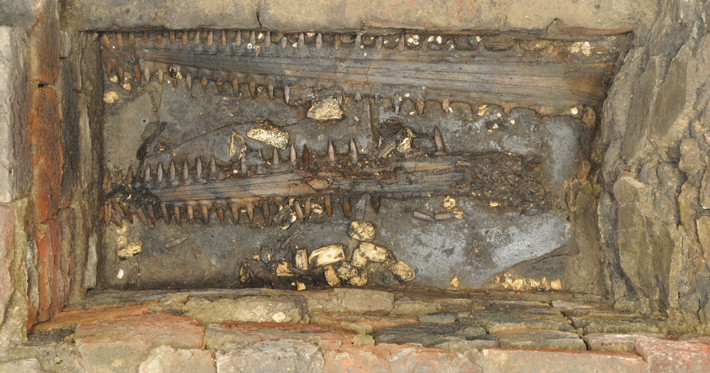 INAH has uncovered a 39 inch sawfish blade in a stone box at the Templo Mayor. The box also contained 11,800 other ceremonial objects. This is the largest of the 78 sawfish blades found so far. The Aztecs revered the fish as a hybrid of sea and earth. Earlier in 2018, they found the carcass of a wolf dressed in gold armor. The wolf was given ear and nose ornaments and a pectoral of gold. It symbolized a human warrior with its head facing west as a companion of the sun in its journey to the underworld in the evening