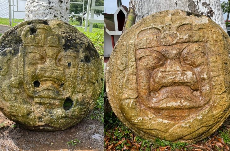 The sculptures come from the Middle Usumacinta region and represents scowling Olmec rulers.