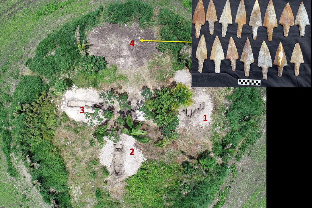 They have found a cache of 15 stemmed points made of chert made of non-local chert. They were unused and placed as a dedicatory cache.