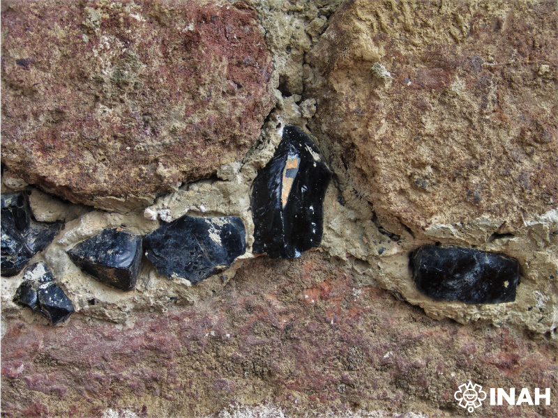 INAH has uncovered 500 obsidian mine shafts 31 miles from Teotihuacan in the Sierra Nevadas. The obsidian was transported to Teotihuacan to workshops there. They have also found ceramic pieces and architecture with obsidian from the Teotihuacan era. Teotihuacan controlled the trade in obsidian from 100 to 600 CE. Obsidian was used in cutting, crafts, tools, rituals, and arrowhead weapons. The type of obsidian mined in these shafts was of the blue and green variety. Black and grey obsidian was used to make projectile points and knives. And in lapidary for gems.